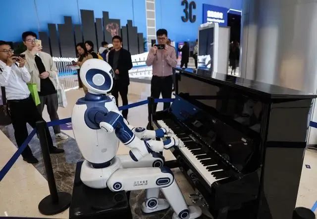 △2023年11月24日,第二届全球数字贸易博览会上会弹钢琴的机器人。