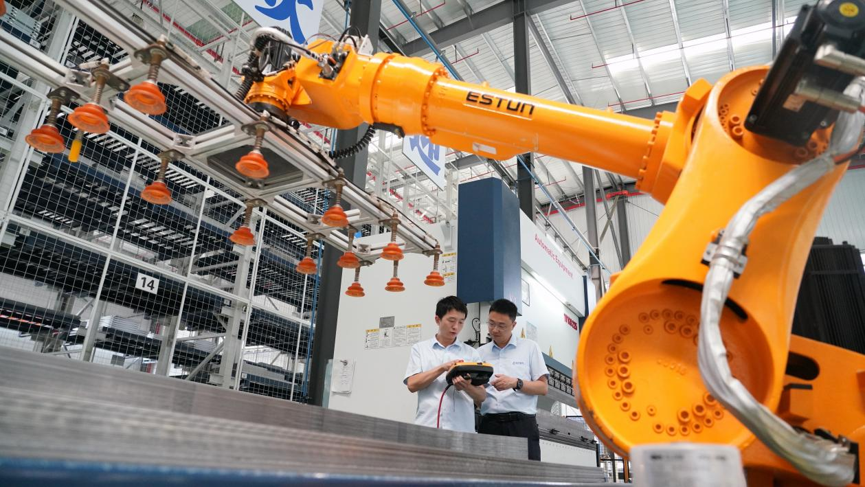 △2023年8月26日,在武汉光谷的一家长江电气企业智能车间,工作人员正在操作智能机械臂。