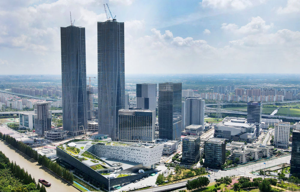 位于上海浦东新区的张江人工智能岛(左)(2023年9月10日摄,无人机照片)。