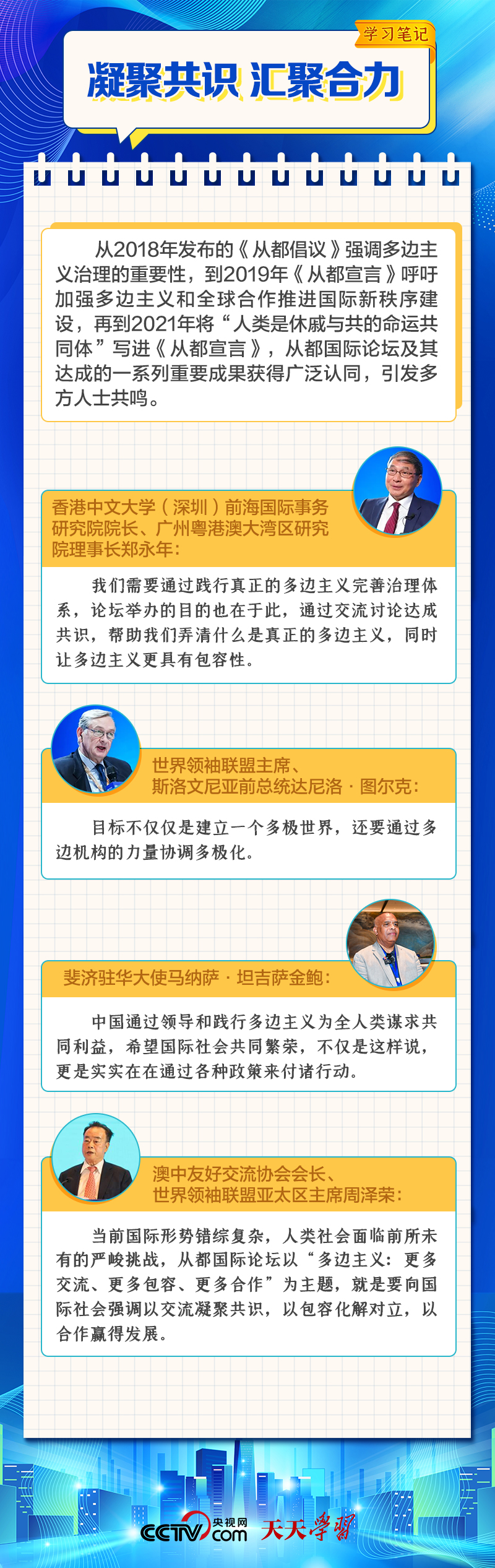 作为加深理解、推进共识、合作共赢的国际高端交流平台,从都国际论坛自2014年创设以来,已举办八届。多年来,从都国际论坛不仅成为了一扇观察和感知当代中国的窗口,更为完善全球治理贡献了智慧和力量。在践行真正的多边主义实践中,中国与世界相向而行,共进共赢。