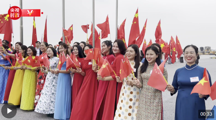 当地时间12月12日中午,中共中央总书记、国家主席习近平乘专机即将抵达越南首都河内内排国际机场。数百名代表组成的欢迎人群正热情迎候习近平的到来。