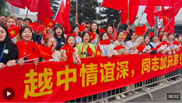 在越南首都河内城市街头,中越两党两国旗帜迎风飘扬,当地各界人士热切期待中共中央总书记、国家主席习近平的到访。
