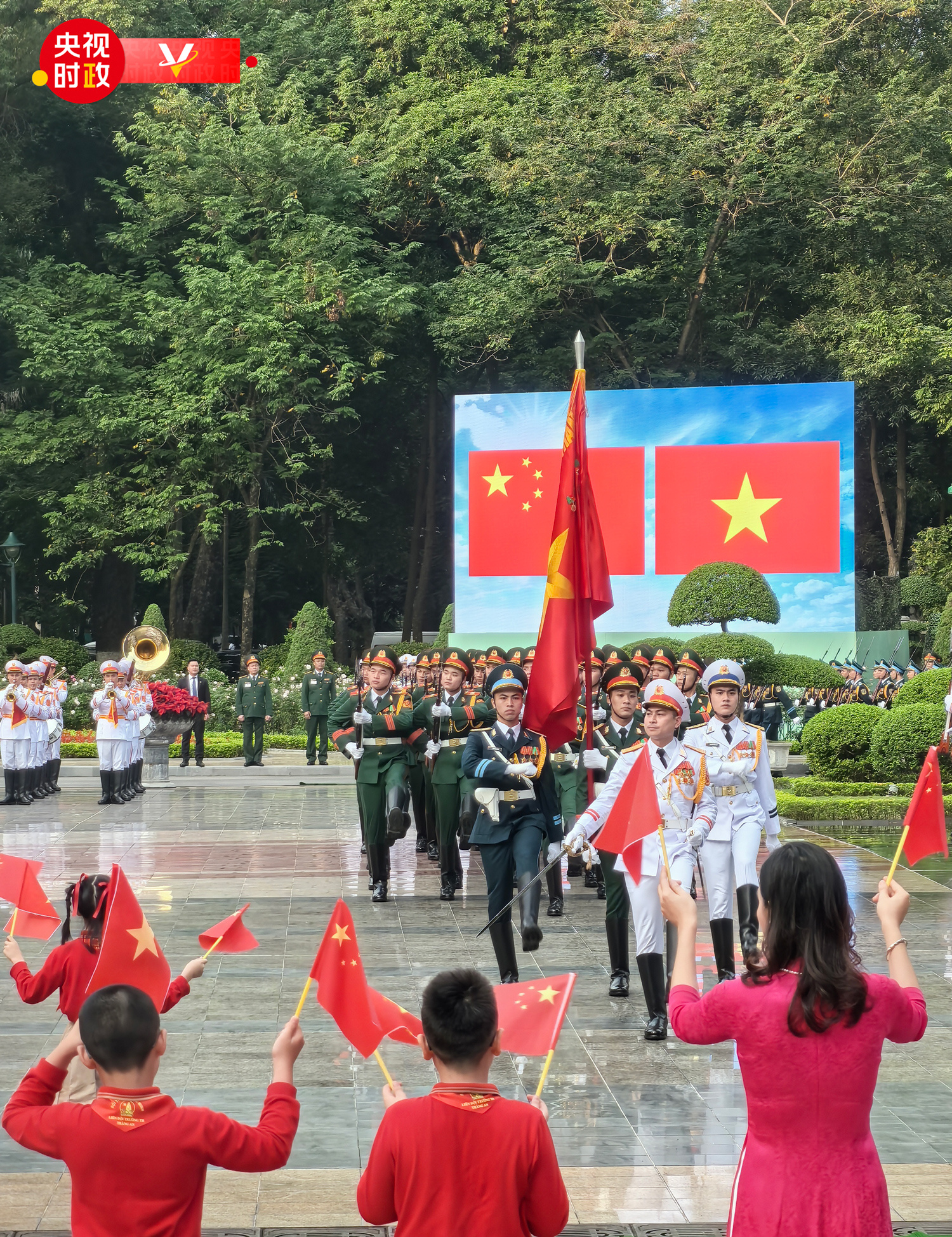 当地时间12月12日下午,中共中央总书记、国家主席习近平出席越共中央总书记阮富仲在主席府广场举行的欢迎仪式。