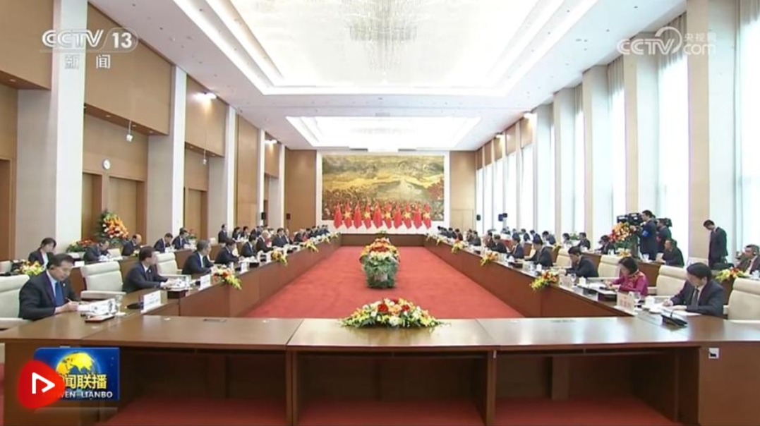 当地时间12月13日上午,国家主席习近平在河内会见越南国会主席王庭惠。