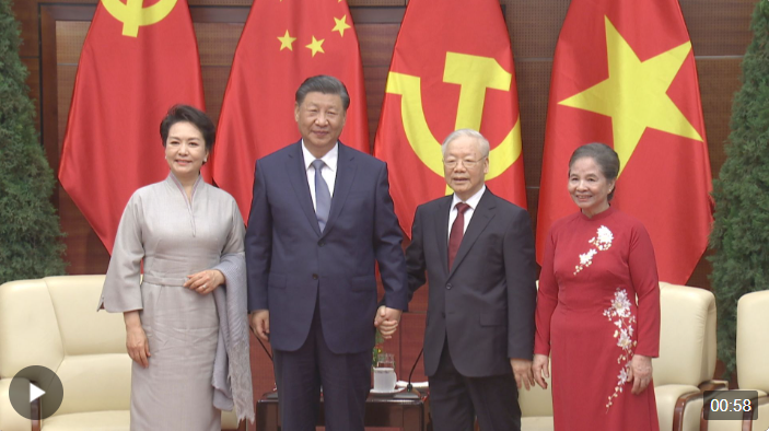 12月13日下午,在结束对越南进行国事访问即将启程回国之际,习近平夫妇同越共中央总书记阮富仲夫妇话别。一段对话,余韵悠长。