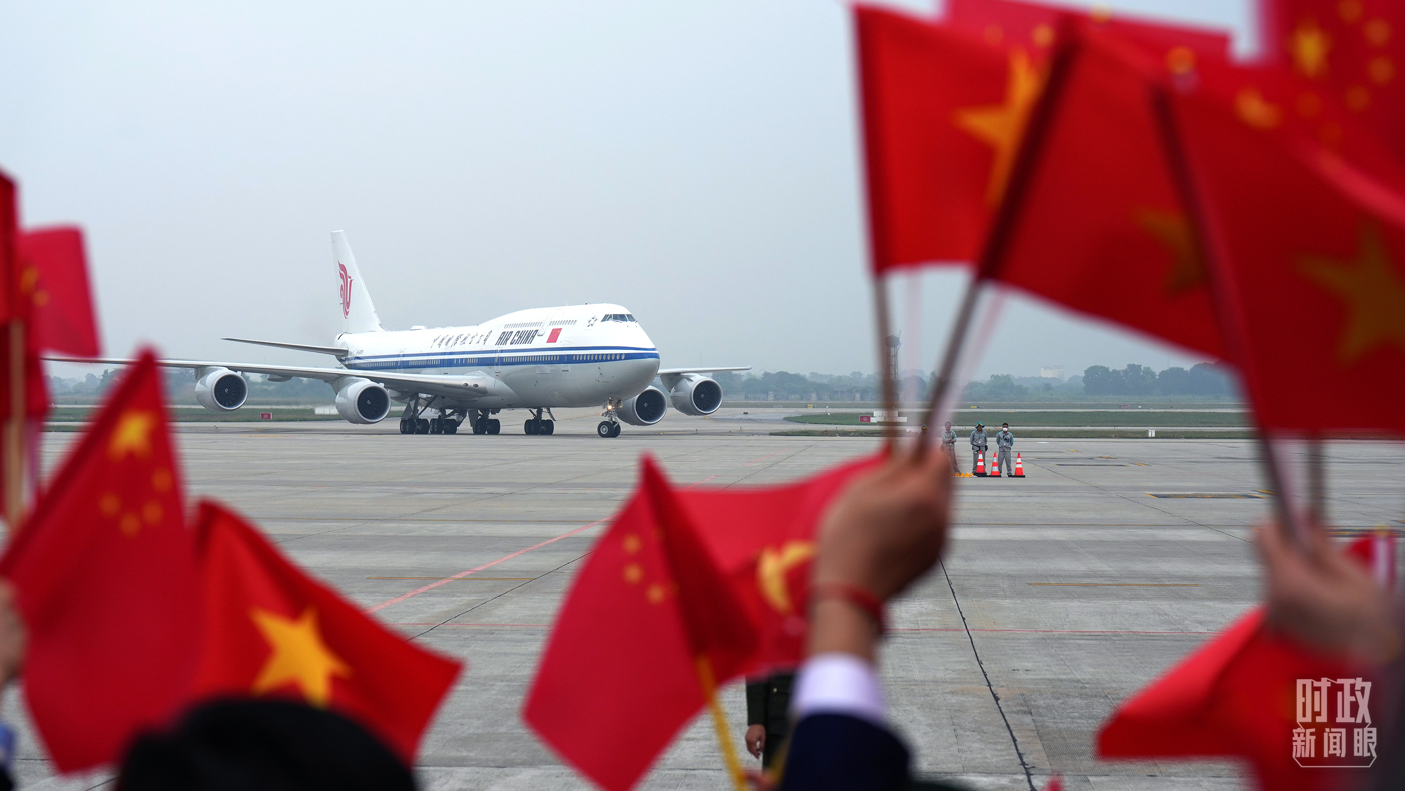 △习近平乘专机抵达越南河内。(总台国广记者李晋拍摄)