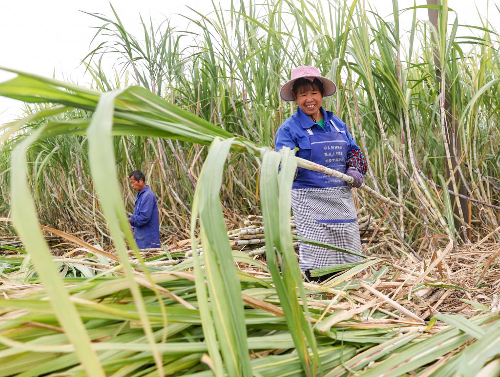近日,在广西来宾市兴宾区,蔗农正在砍收甘蔗。新华社记者 胡星宇 摄