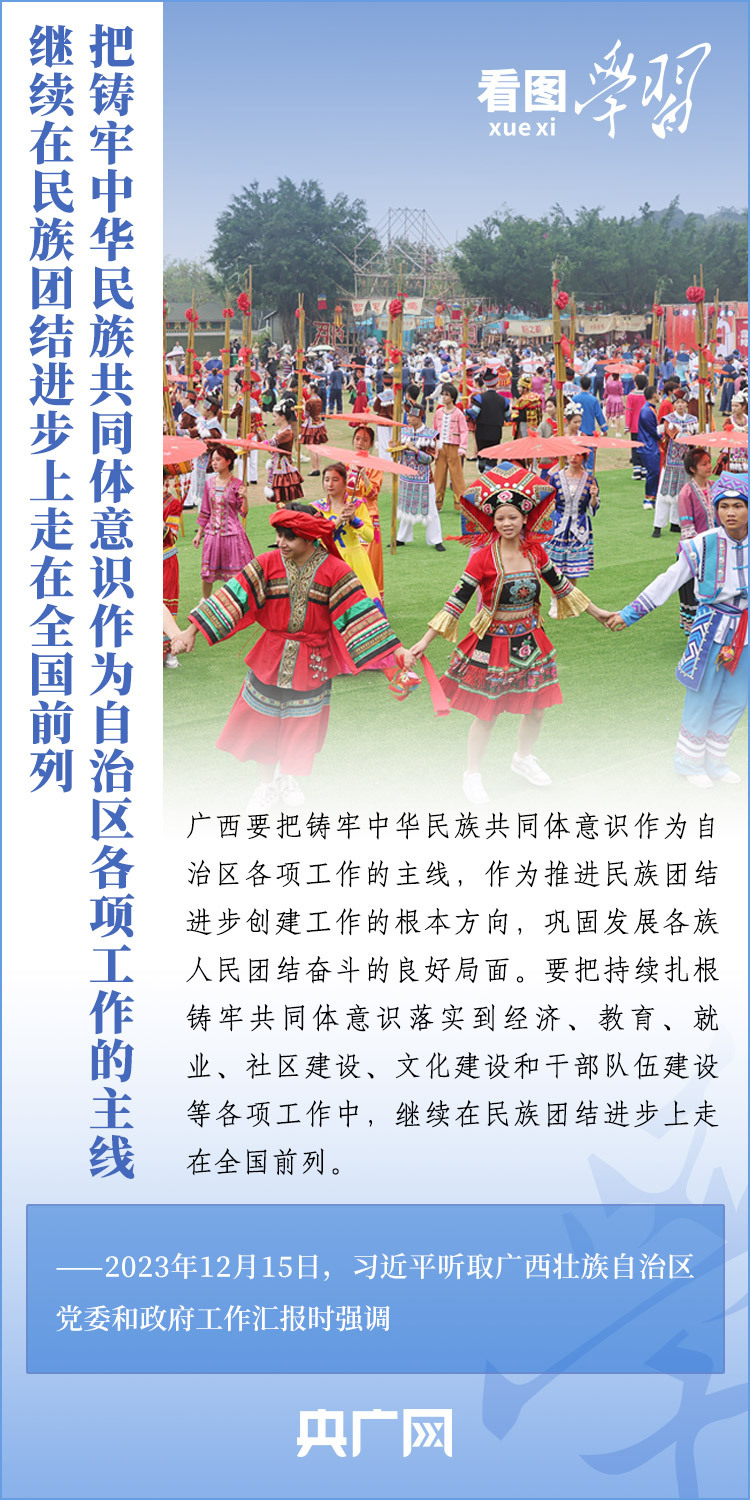 12月14日至15日,刚刚结束对越南进行国事访问的习近平总书记在广西考察并听取广西壮族自治区党委和政府工作汇报。总书记对广西发展提出殷切希望,强调广西要发挥自身优势,以铸牢中华民族共同体意识为主线,解放思想、创新求变,向海图强、开放发展,努力在推动边疆民族地区高质量发展上展现更大作为,奋力谱写中国式现代化广西篇章。一起来学习!