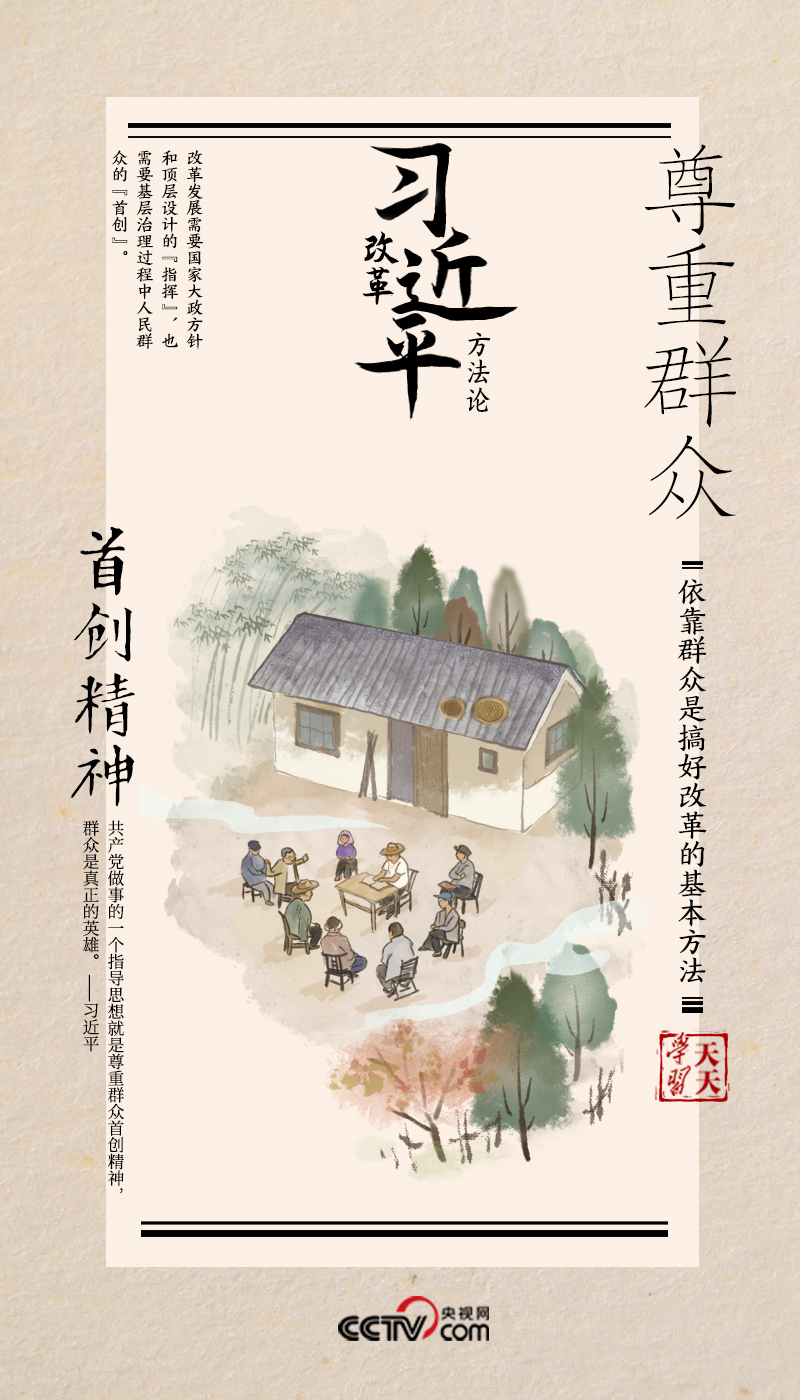 改革发展需要国家大政方针和顶层设计的“指挥”,也需要基层治理过程中人民群众的“首创”。几十年如一日,习近平在推动改革中率先垂范,充分尊重群众的首创精神。