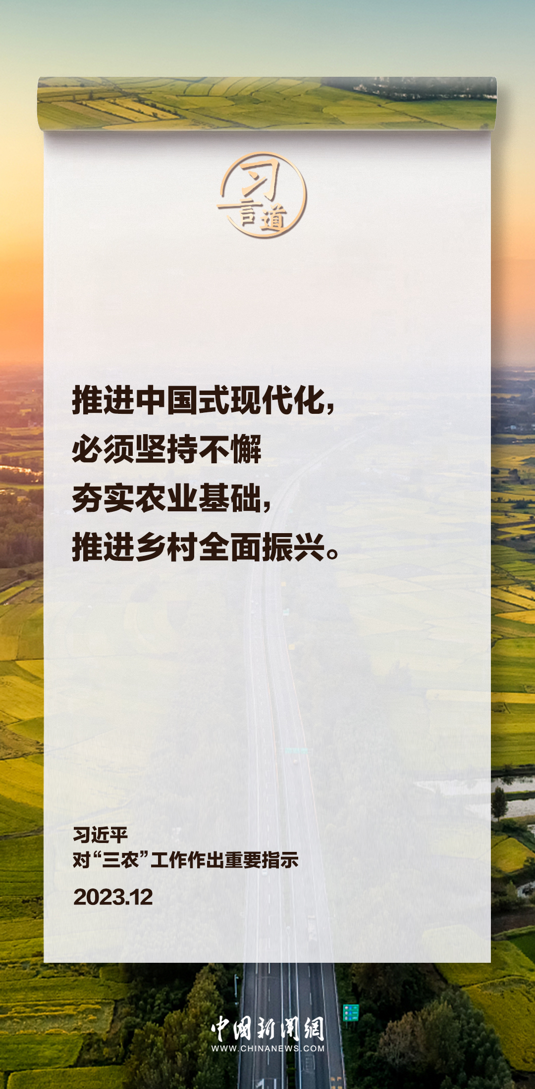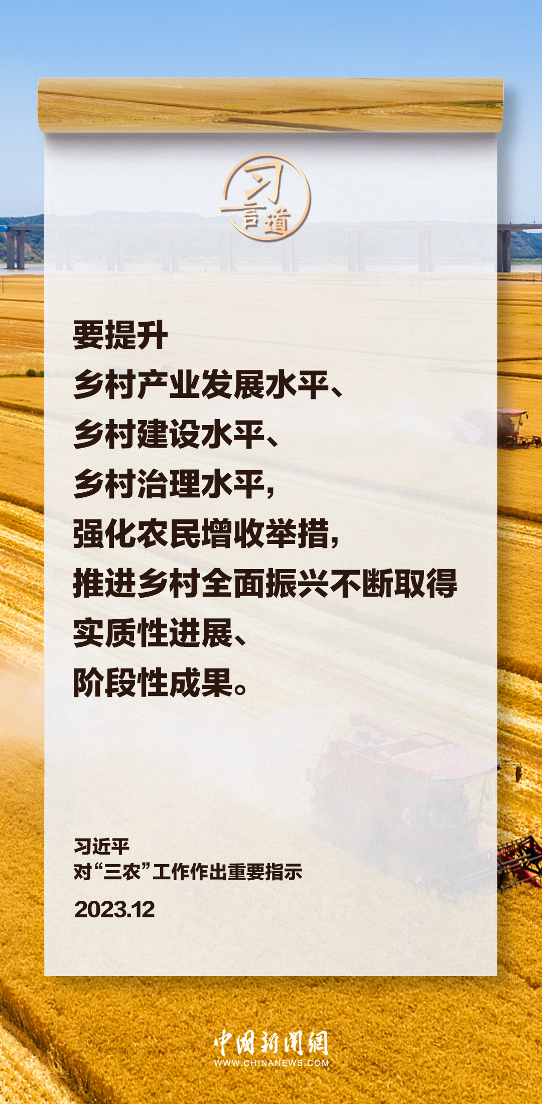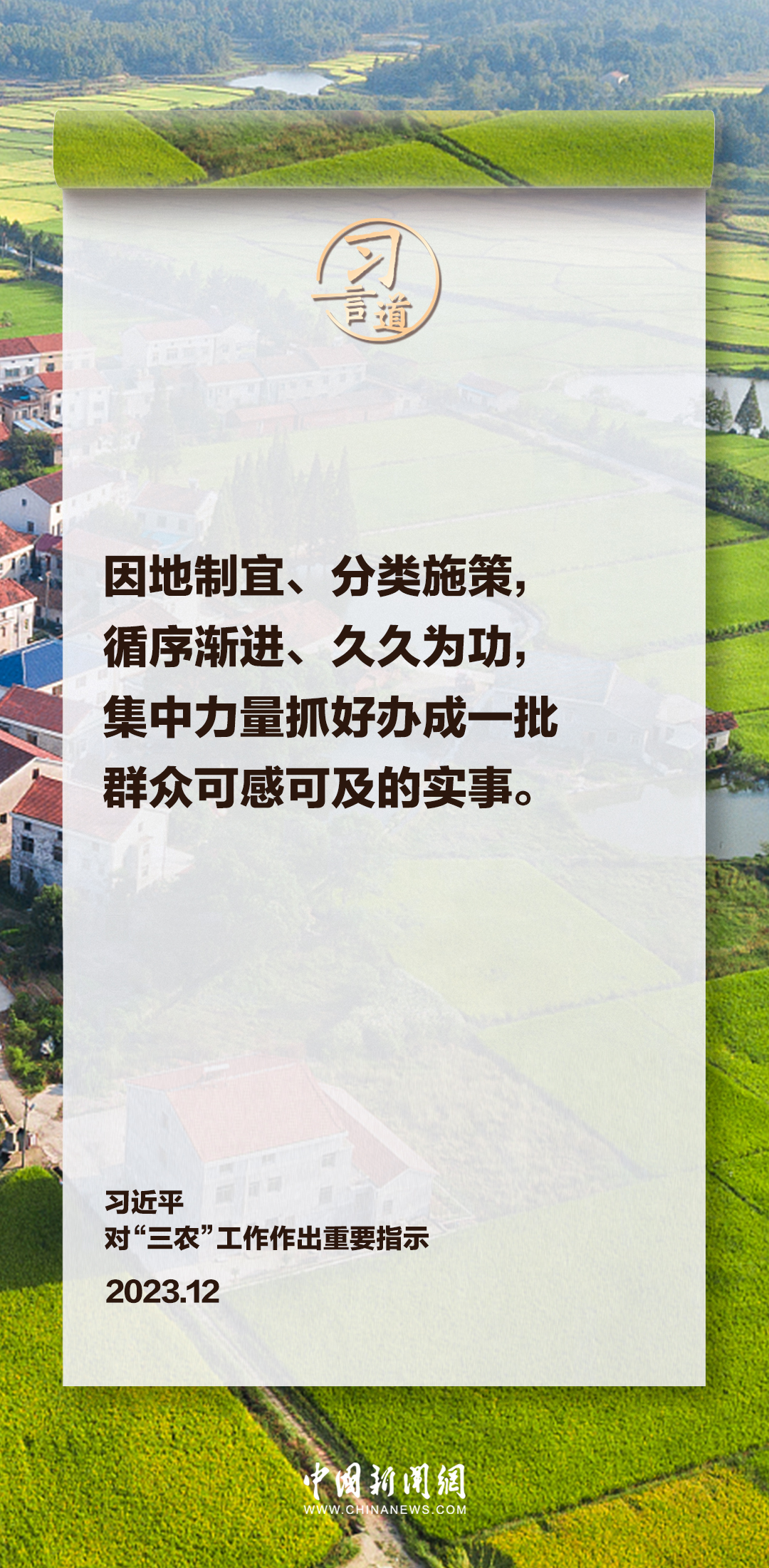 中央农村工作会议12月19日至20日在北京召开。中共中央总书记、国家主席、中央军委主席习近平对“三农”工作作出重要指示。习近平指出——