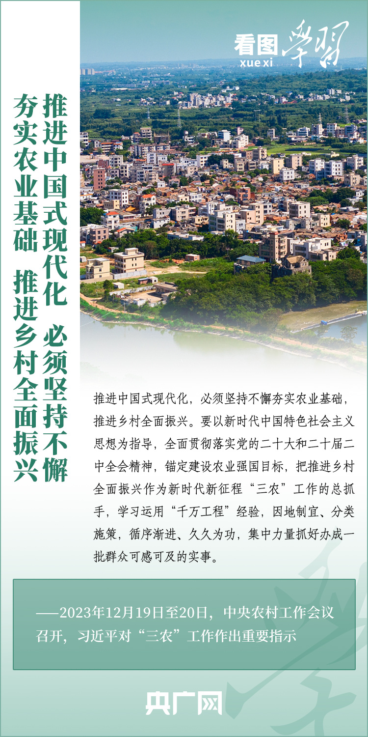 12月19日至20日,中央农村工作会议在京召开。习近平总书记对做好“三农”工作作出重要指示,阐明推进乡村全面振兴的战略要求和主攻方向。总书记强调,推进中国式现代化,必须坚持不懈夯实农业基础,推进乡村全面振兴。一起来学习!