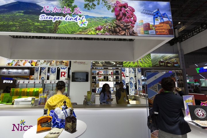2023年11月6日在第六届进博会国家展拍摄的尼加拉瓜展台。