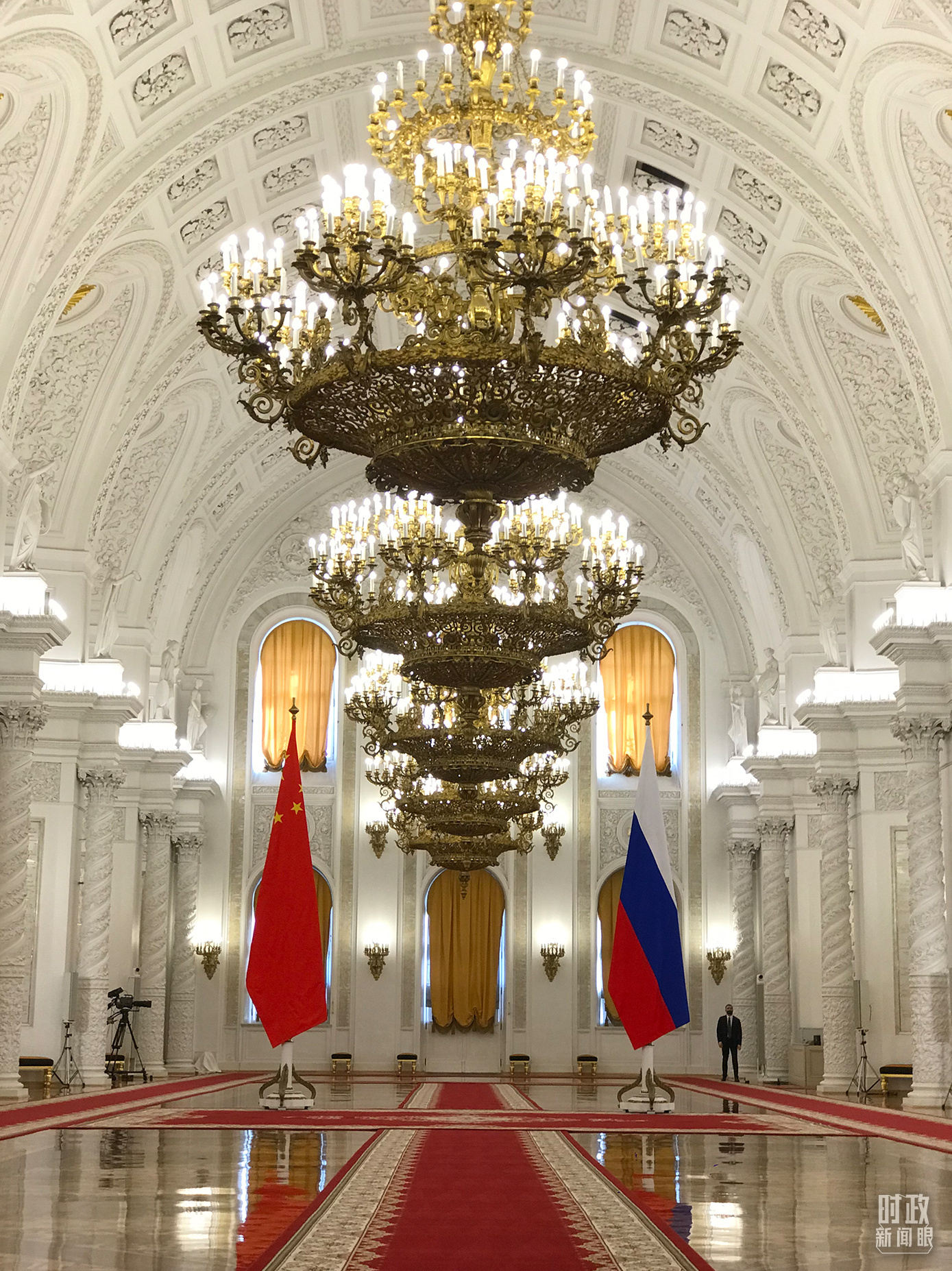 △ 2023年3月,应俄罗斯总统普京邀请,习近平主席对俄罗斯进行国事访问。图为克里姆林宫乔治大厅,习主席在这里同普京总统握手合影。(总台央视记者石伟明拍摄)