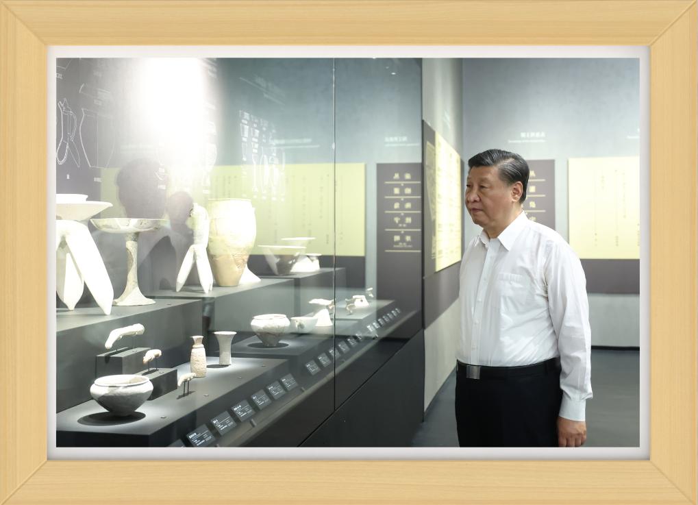 这张在四川广汉三星堆博物馆新馆拍摄的照片,记录下习近平总书记端详文物的一幕。