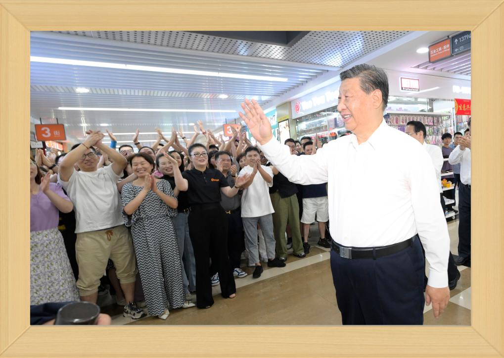 9月,习近平总书记来到浙江义乌国际商贸城考察,人们纷纷从商铺中走出来,掌声、问候声、欢呼声此起彼伏。