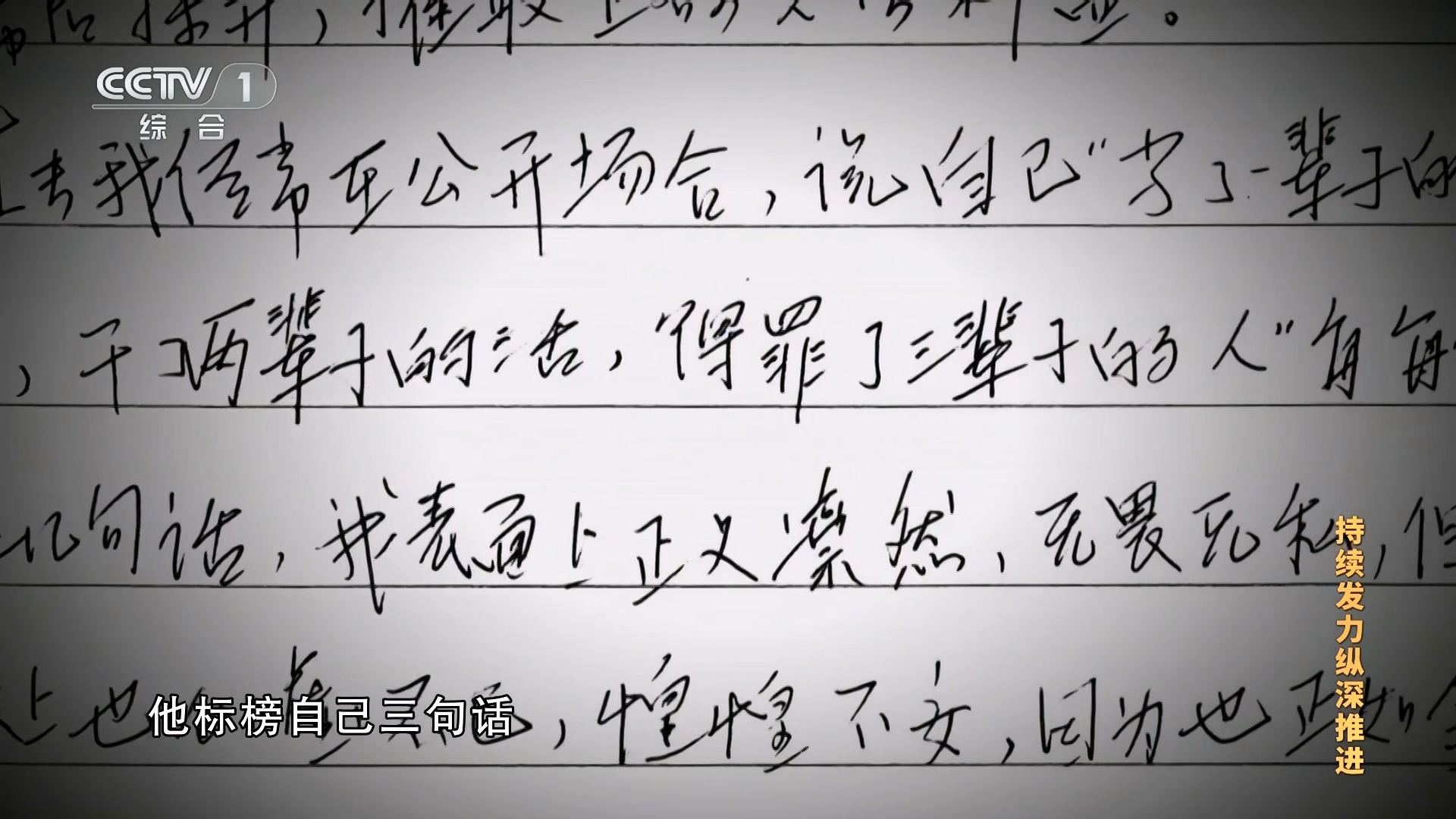 张晓霈:反思我的罪孽,一个人能否廉洁自律最大的危险是自己,最难战胜的也是自己。入党为了什么,当干部干了什么,身后留有什么,以前自己都是当作座右铭放到自己桌上,当了重要领导的时候,把这些事都忘了。