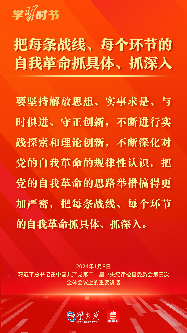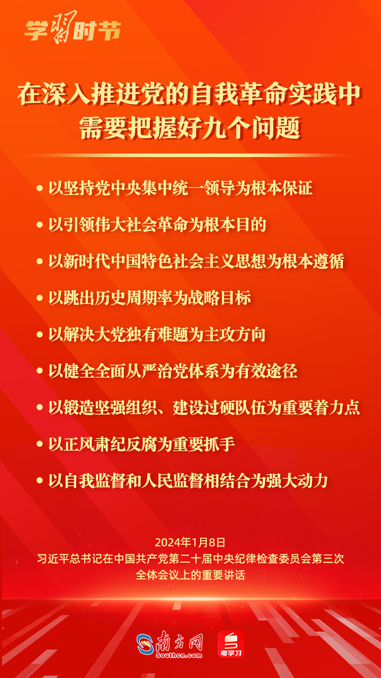 1月8日,中共中央总书记、国家主席、中央军委主席习近平在中国共产党第二十届中央纪律检查委员会第三次全体会议上发表重要讲话,深刻阐述党的自我革命的重要思想,对持续发力、纵深推进反腐败斗争作出战略部署。