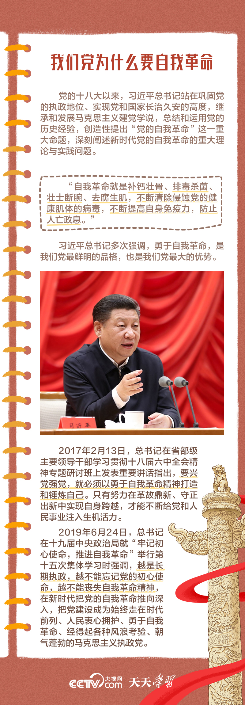 天天学习“在新时代十年全面从严治党的实践和理论探索中,我们不断深化对党的自我革命的认识,积累了丰富实践经验,形成了一系列重要理论成果,系统回答了我们党为什么要自我革命、为什么能自我革命、怎样推进自我革命等重大问题。”1月8日,习近平总书记在中国共产党第二十届中央纪律检查委员会第三次全体会议上发表重要讲话。