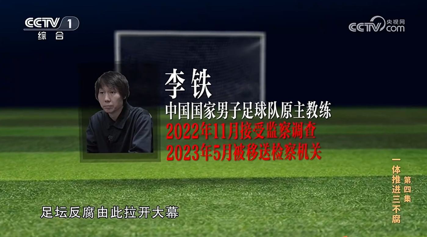 【解说词】李铁是本次专案第一个接受监察调查并被留置的人员,事实证明,这个切入点的选择是非常精准的。他既在多家俱乐部担任过教练,又曾担任中国国家男子足球队主教练,在足球领域关系盘根错节,以他为突破口纵深挖掘、横向拓展,牵出了从联赛到国家队、从俱乐部到足协的若干涉嫌违纪违法犯罪人员,以及种种黑幕和制度漏洞。