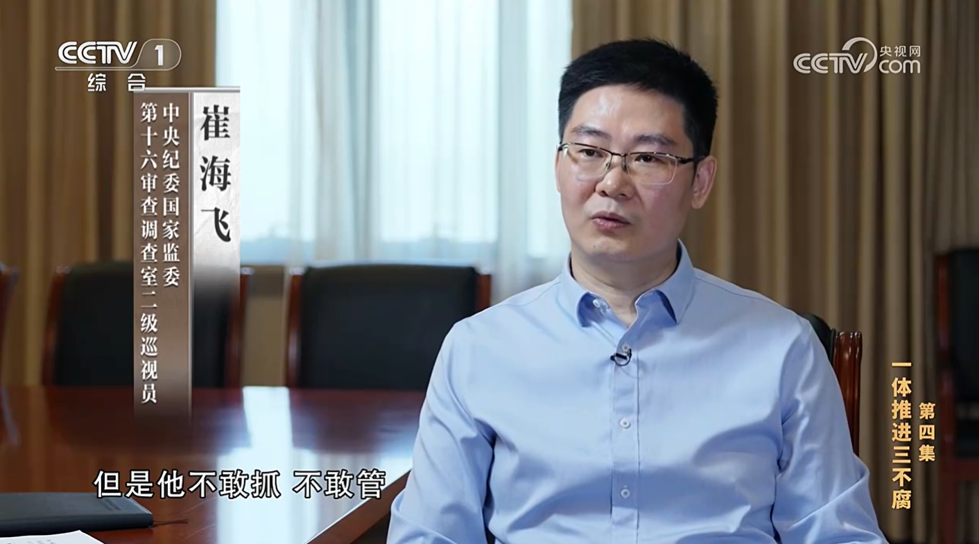 崔海飞(中央纪委国家监委第十六审查调查室二级巡视员):把调查改成研究,没有查出任何问题,也没有处理任何人,只是作了一个调研报告。他本应带领中国足协党委担负起中国足球全面从严治党的主体责任,但是他不敢抓、不敢管,也在一定程度上导致中国足球领域腐败问题严重,行业生态恶化。
