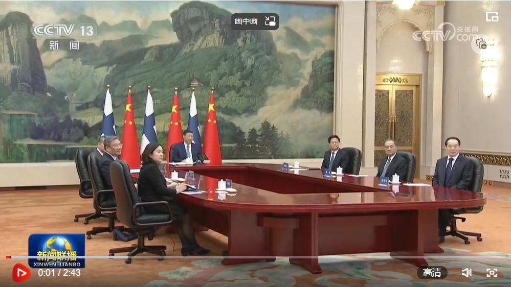1月10日下午,国家主席习近平同芬兰总统尼尼斯托举行视频会晤。