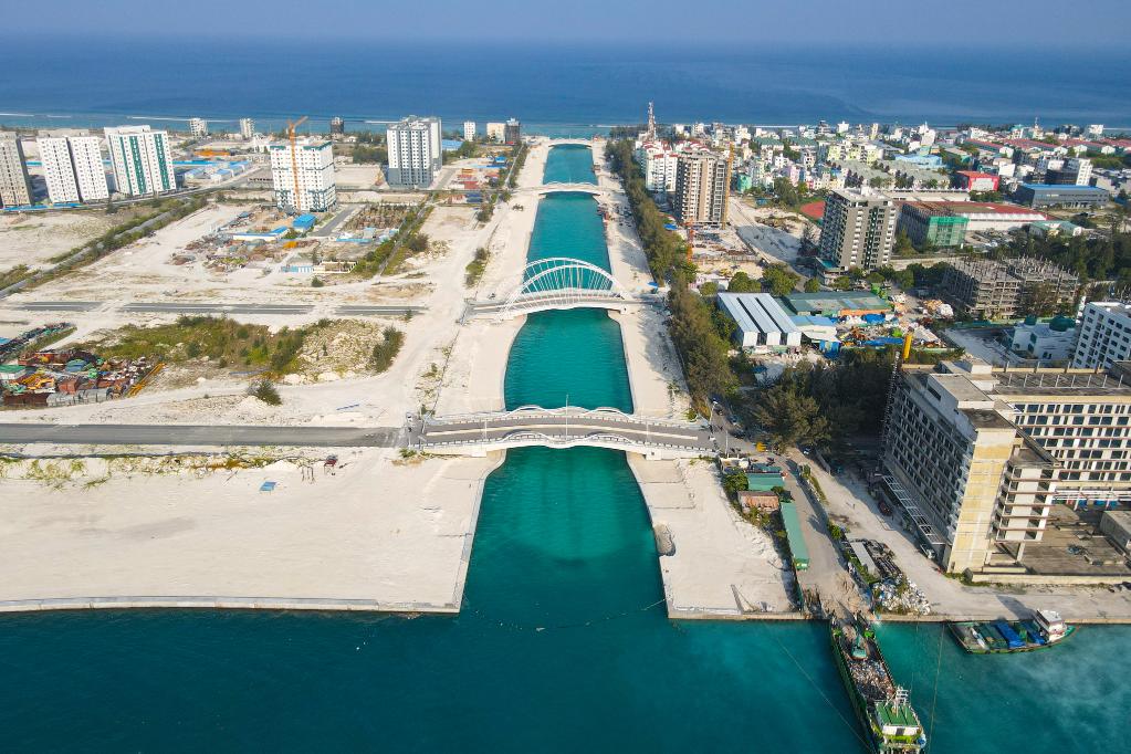 大桥所连接的胡鲁马累,是建设在填海岛屿上的新兴城市,寄托着马尔代夫人民对发展的美好期待。如今,一座座崭新的公寓楼矗立在海岸旁,开放式小区整洁漂亮。由中国机械设备工程股份有限公司承建的约4000套公寓,帮助解决当地住房问题。不少当地居民把这些小区称作“中国城”。