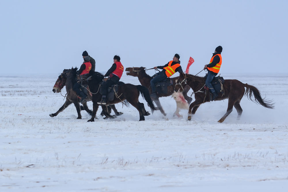 2023年12月21日,牧民在“冬宰节”上表演叼羊。