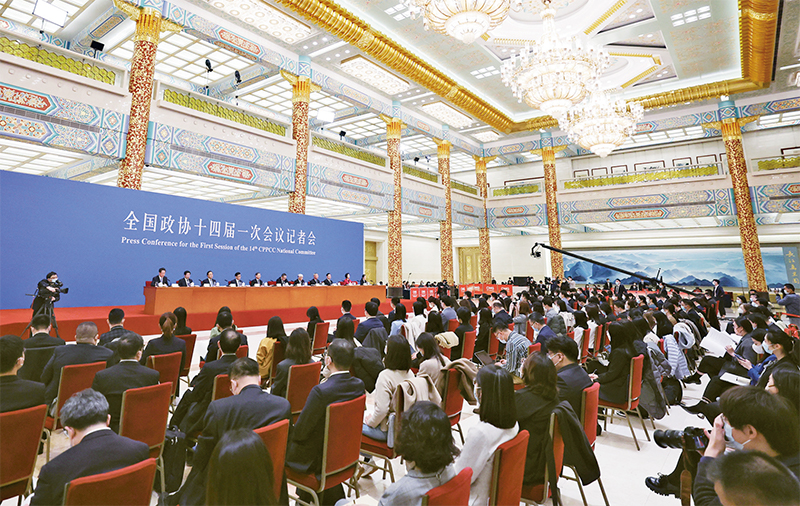 中国共产党领导的多党合作和政治协商制度作为我国一项基本政治制度,是中国共产党、中国人民和各民主党派、无党派人士的伟大政治创造,是从中国土壤中生长出来的新型政党制度。长期以来,各民主党派同中国共产党长期共存、互相监督、肝胆相照、荣辱与共,履行民主监督职能,在帮助中国共产党科学决策、民主决策、依法决策上作出了重要贡献。图为2023年3月5日,全国政协十四届一次会议在北京人民大会堂举行民主党派中央和全国工商联领导人记者会。 新华社记者 曹灿/摄