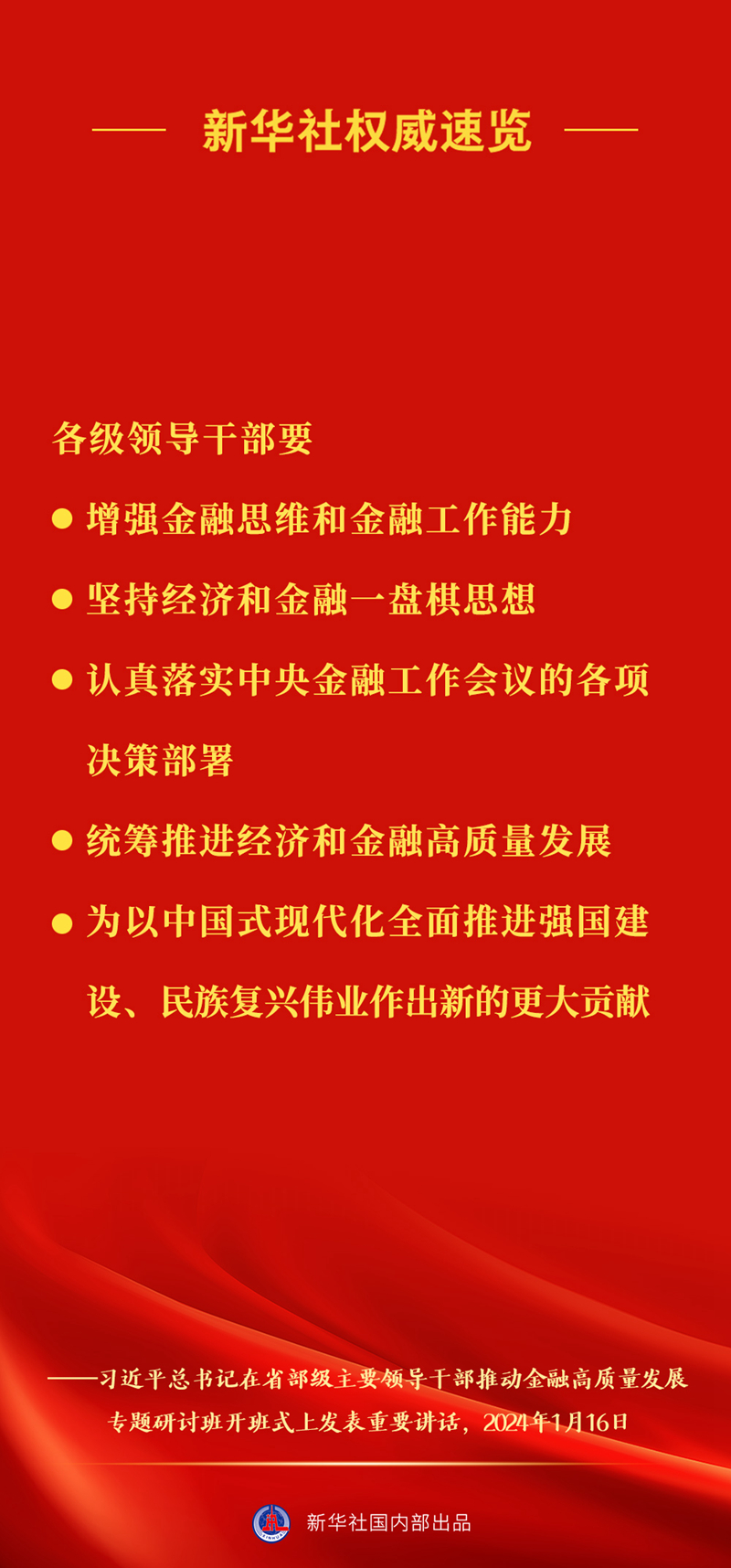 新华社权威速览 | 习近平总书记在推动金融高质量发展专题研讨班上重要讲话要点