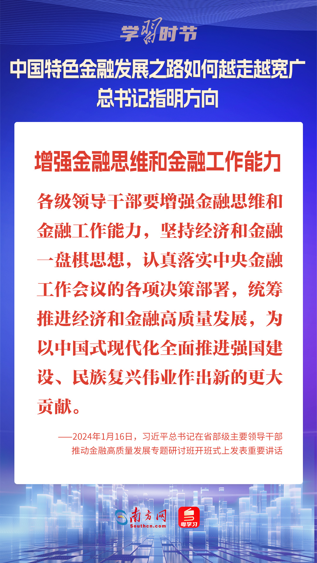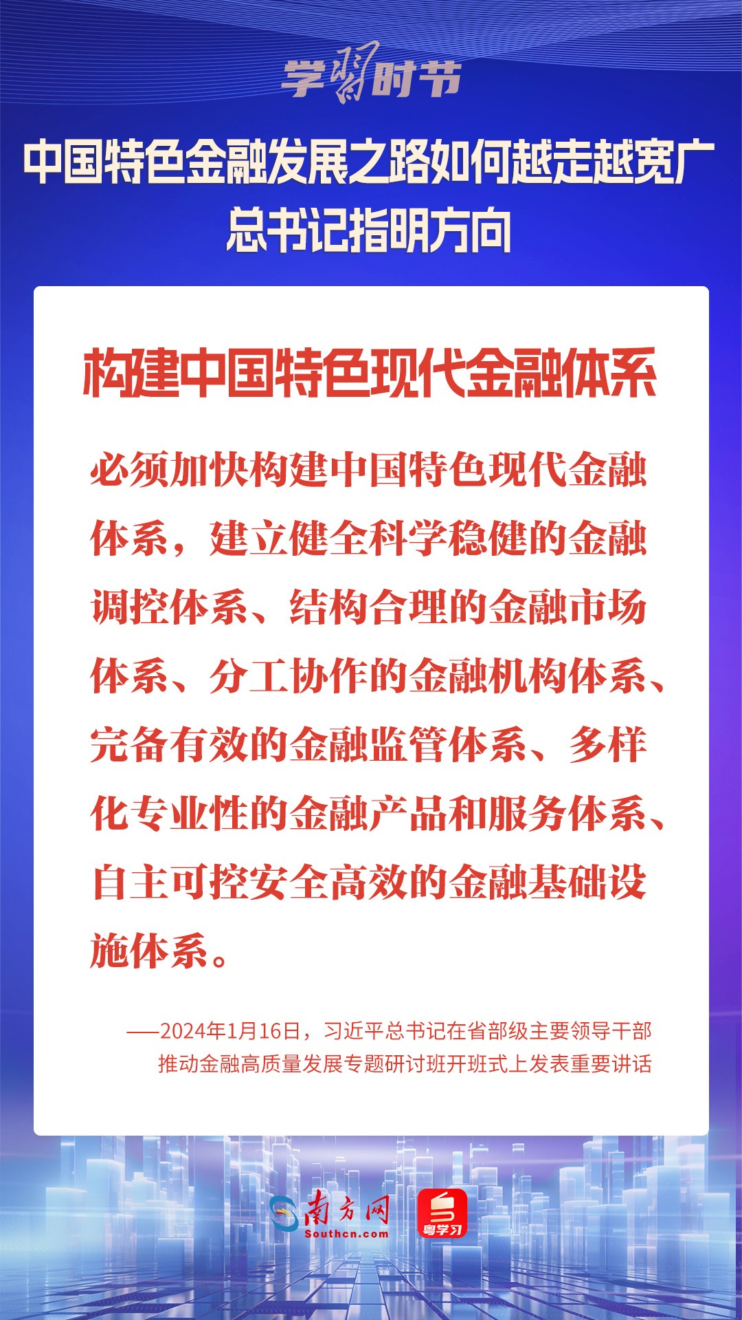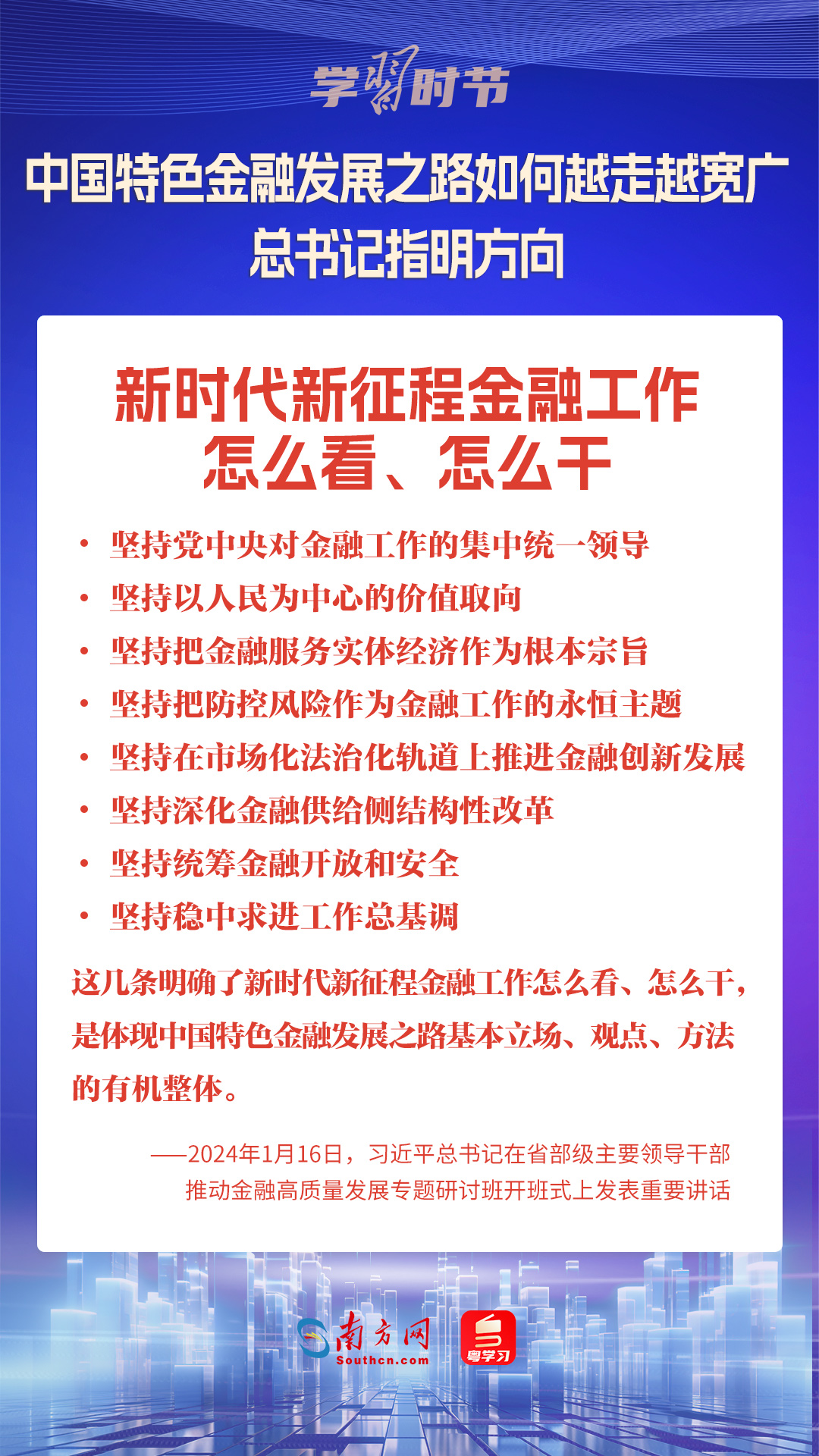 1月16日,中共中央总书记、国家主席、中央军委主席习近平在省部级主要领导干部推动金融高质量发展专题研讨班开班式上发表重要讲话,为中国特色金融发展之路指明方向。