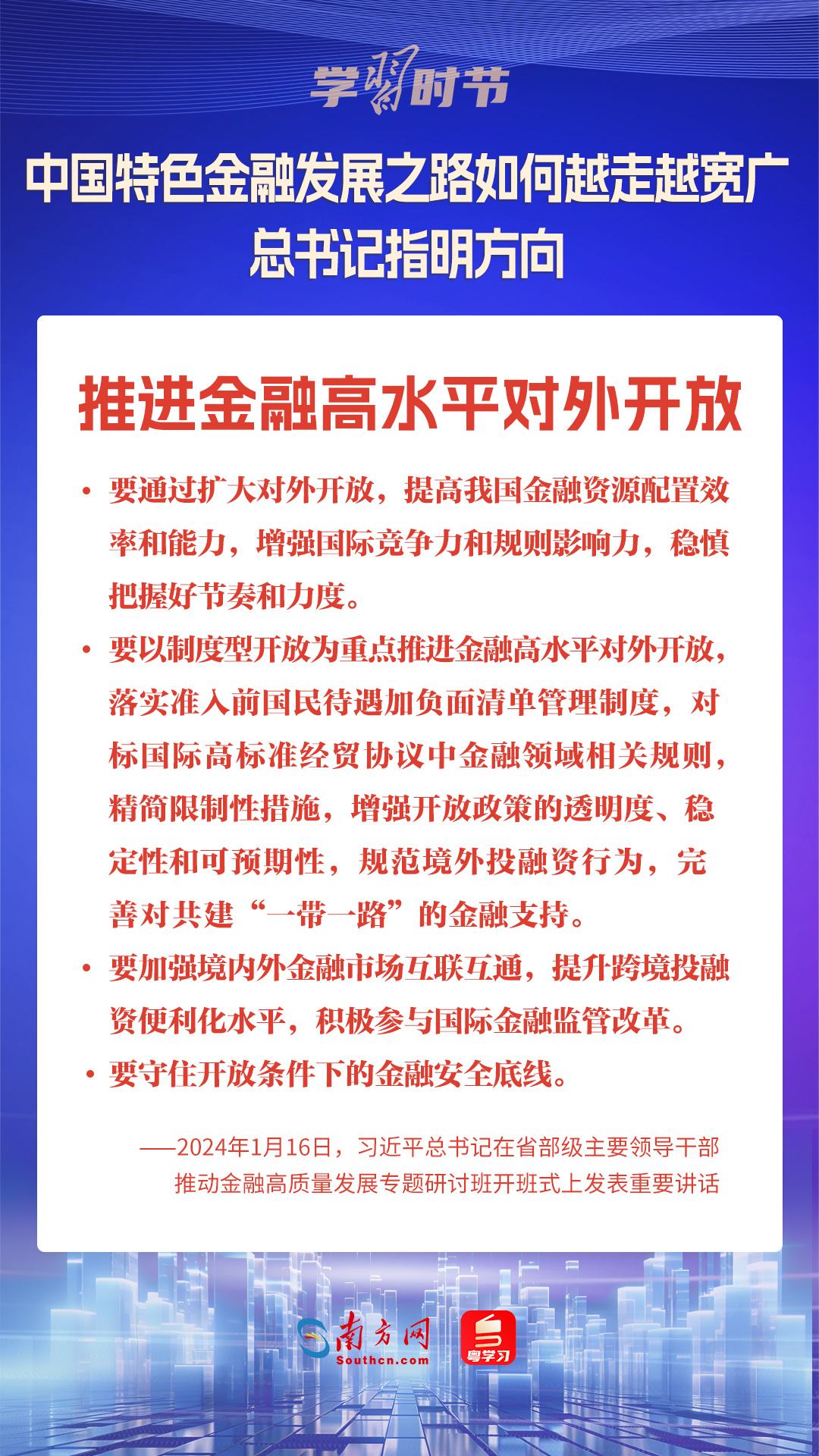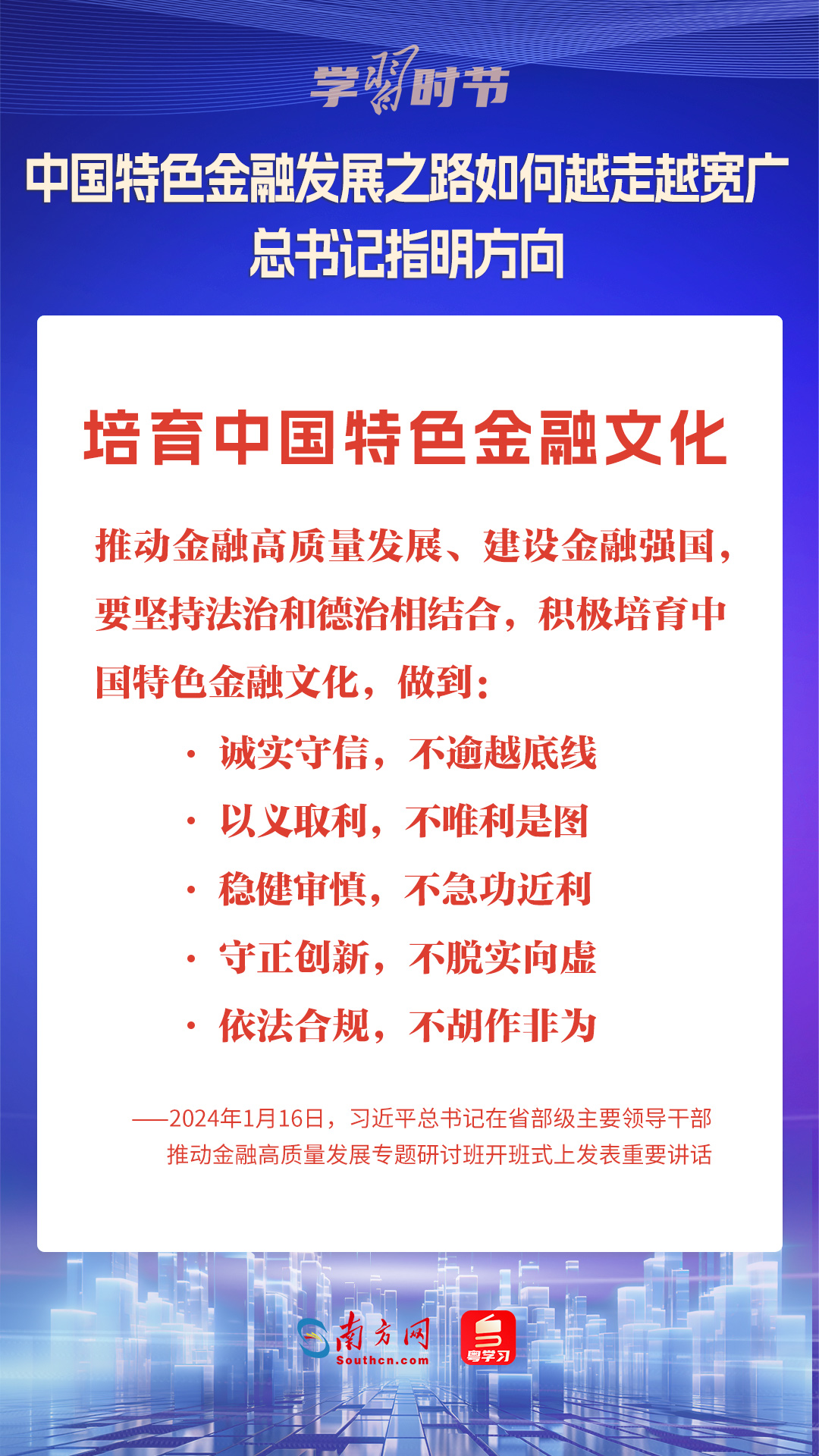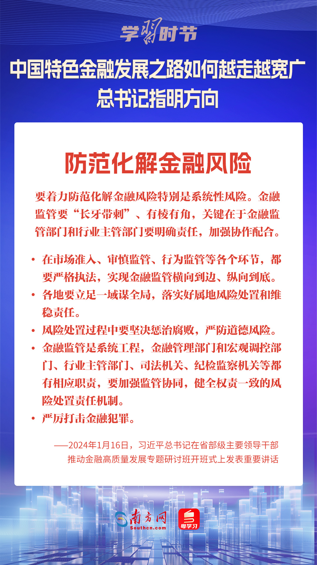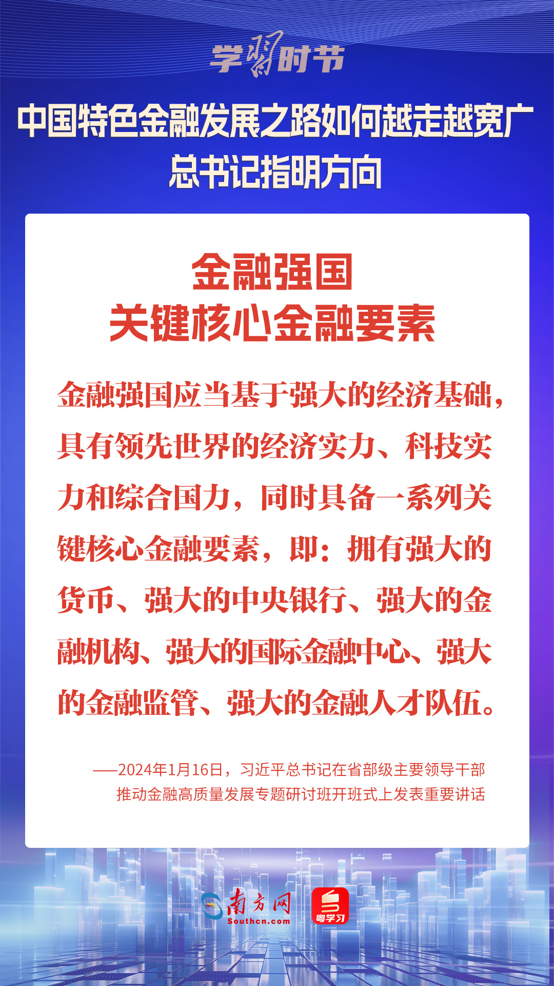 1月16日,中共中央总书记、国家主席、中央军委主席习近平在省部级主要领导干部推动金融高质量发展专题研讨班开班式上发表重要讲话,为中国特色金融发展之路指明方向。