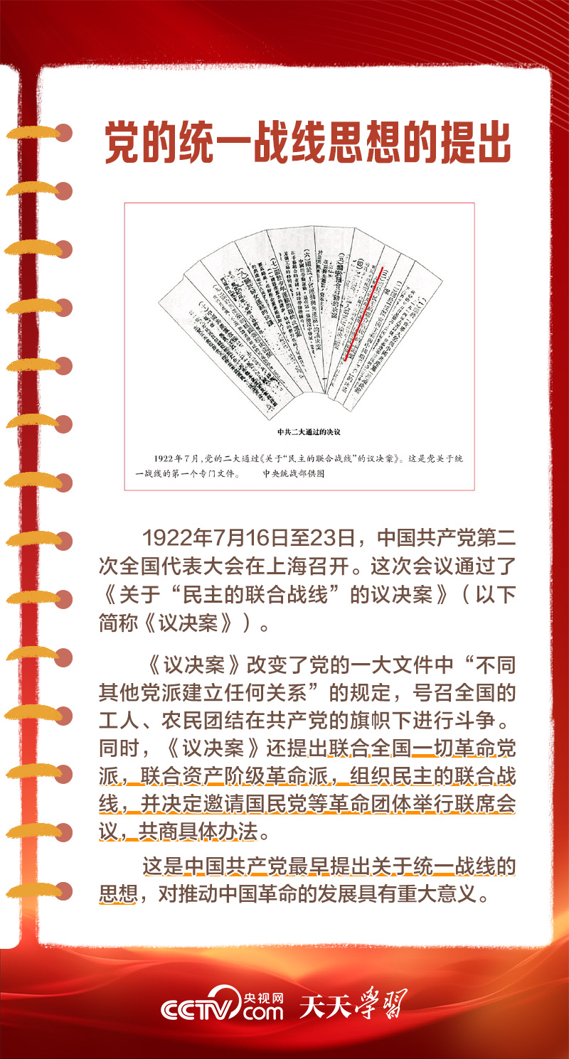 天天学习1月16日出版的第2期《求是》杂志发表了习近平总书记的重要文章《完整、准确、全面贯彻落实关于做好新时代党的统一战线工作的重要思想》,该文是习近平总书记2022年7月在中央统战工作会议上讲话的一部分。文章指出,统一战线是党克敌制胜、执政兴国的重要法宝,是团结海内外全体中华儿女实现中华民族伟大复兴的重要法宝,必须长期坚持。