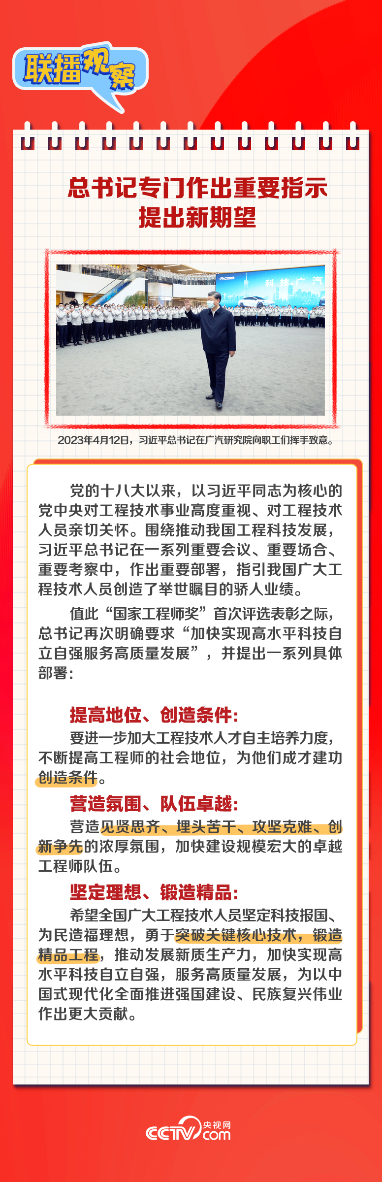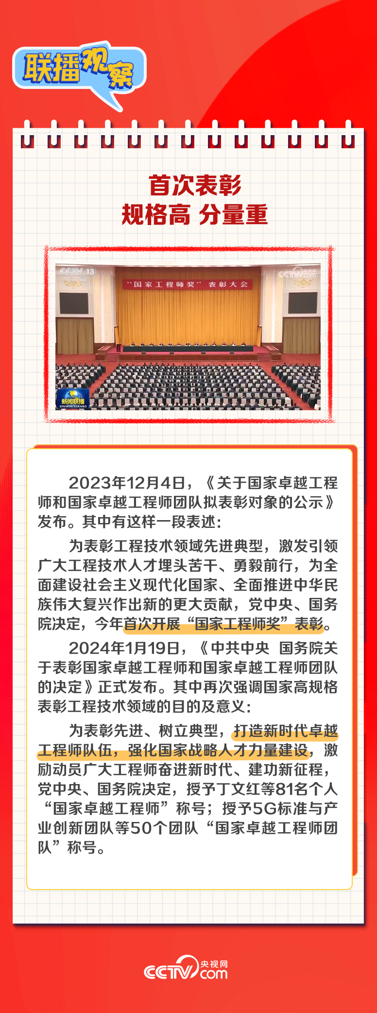 总书记对全国广大工程技术人员提出哪些希望?获奖者和获奖团队因何上榜?“国家工程师奖”奖章细节中藏着哪些奥秘?央视网《联播观察》带您读懂国家最高规格表彰工程技术领域先进典型背后的深意。