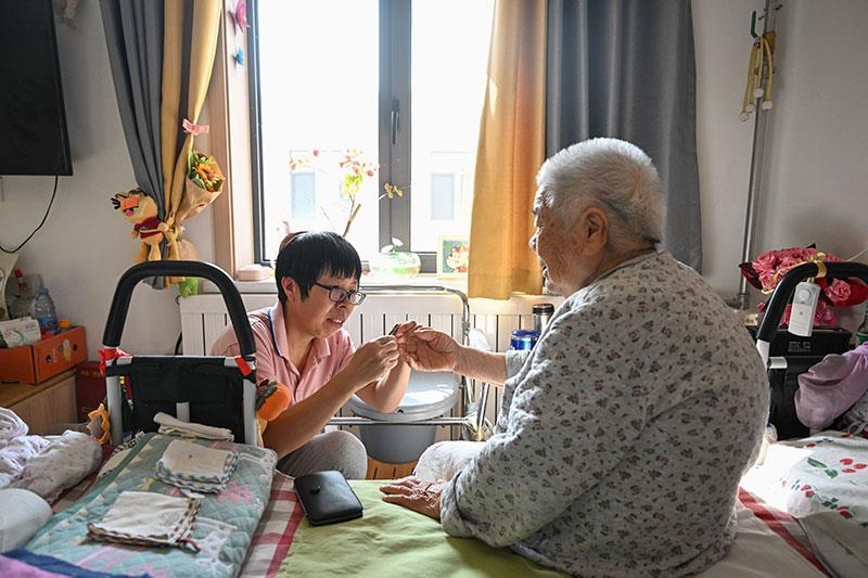 △2023年10月17日,工作人员在天津市河西区越秀路街道居家养老服务中心为老年人服务。
