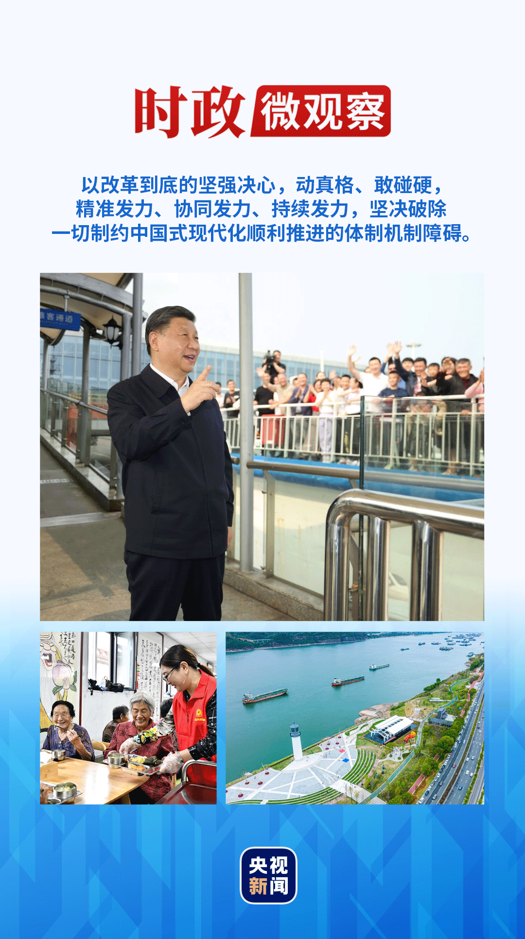 把全面深化改革纳入“四个全面”战略布局,亲自主持召开40次中央全面深化改革领导小组会议和30次中央全面深化改革委员会会议,加强改革顶层设计;深入各地各部门进行考察调研,察实情、听民声、谋良策……在习近平总书记的引领推动下,我国落实一系列改革方案,从衣食住行、教育、医疗、养老等各个环节,织密一张张民生保障网。