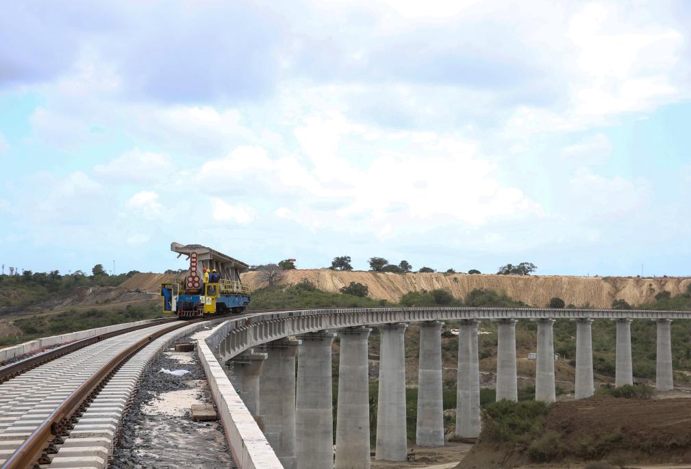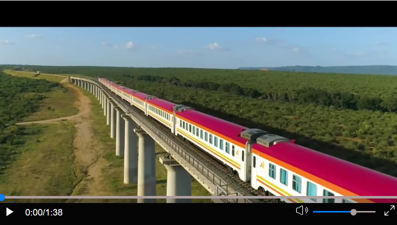 ↑2018年6月2日,列车在肯尼亚蒙内铁路上行驶。