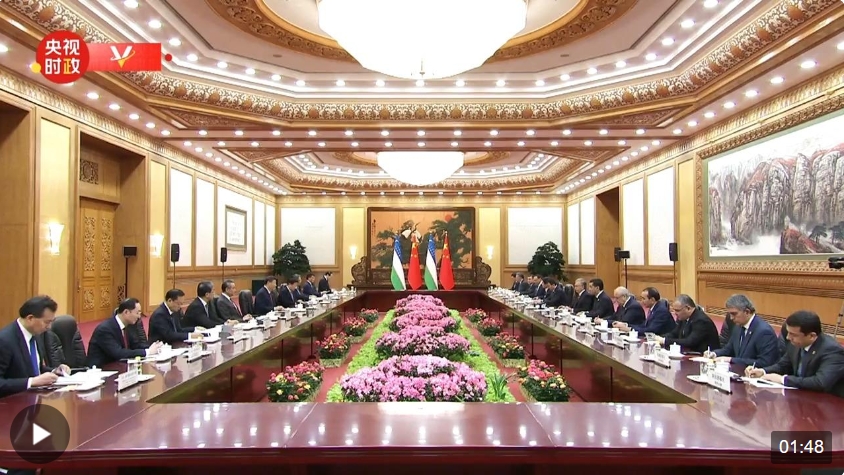1月24日下午,国家主席习近平在人民大会堂同来华进行国事访问的乌兹别克斯坦总统米尔济约耶夫举行会谈。