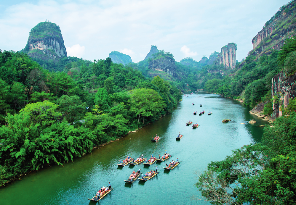 游客在福建省武夷山国家公园九曲溪乘船游览(2023年10月3日摄)。陈颖摄/本刊