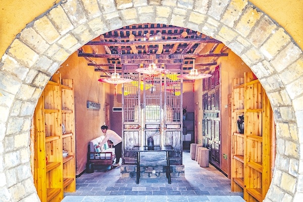 ▲ 麻城市黄土岗镇桐枧冲村茯苓窝,村民在由老屋升级改造的共享民宿里忙碌