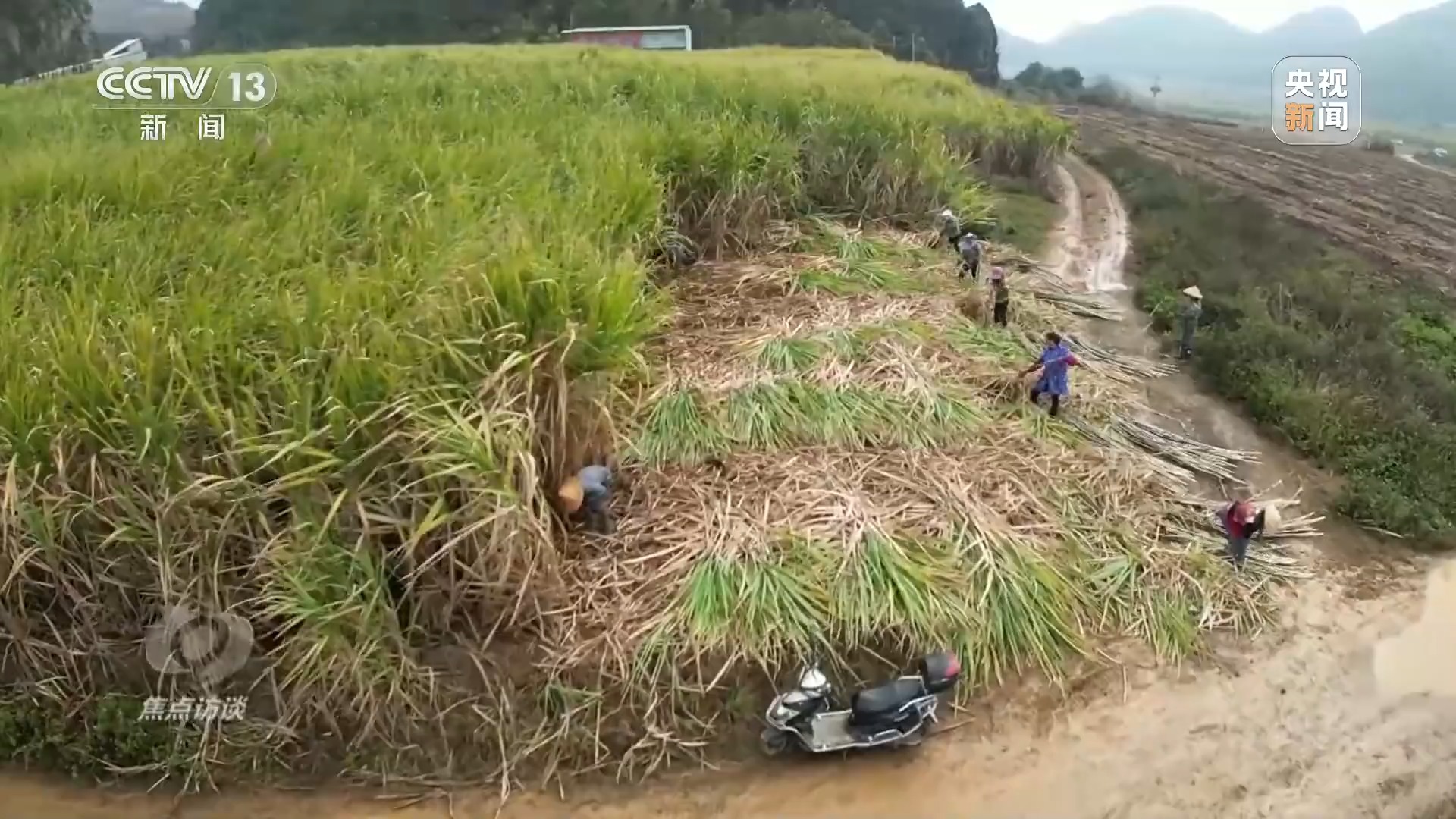 广西来宾凤凰镇大许村蔗农 霍佳丽:“我是广西来宾凤凰镇的蔗农,我们家的甘蔗今天开始收了。我们种的这种甘蔗不是吃的果蔗,而是专门用来生产糖的糖料蔗。这个时候也是我们最忙的时候”