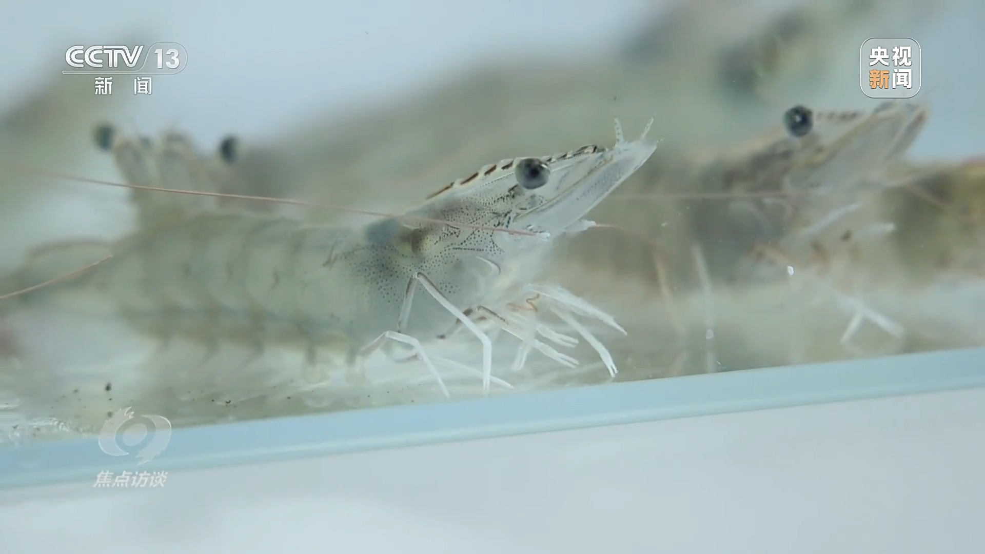 陈奕彬:“基地联合中山大学,从多个区域引进多个种群,组成一个选育的基础群体,又开始经过一代群体选育,加上五代的家系选育,历经大概八代、十年的时间,终于在2011年的时候选出国内第一个抗病的南美白对虾新品种:中兴1号。”