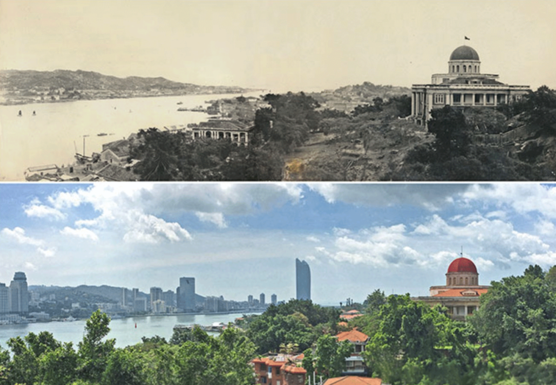 △鼓浪屿-万石山风景名胜区的鼓浪屿“八卦楼”一带今昔对比