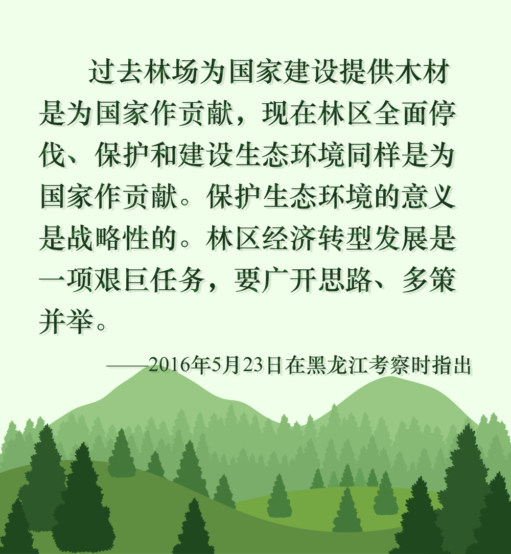 绿水青山就是金山银山,保护生态环境就是保护生产力,改善生态环境就是发展生产力。十年停伐仅仅是个起点,新征程上,龙江儿女正牢记嘱托,建好建强北方生态安全屏障,在维护国家生态安全中担当尽责。