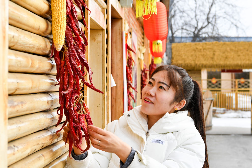 ↑2024年3月14日,民宿老板史瑞娟在大兴安岭地区漠河市北极村雪人木屋民宿院内整理用于装饰的干辣椒。在大兴安岭地区漠河市北极村,游客纷至沓来。“停伐之后,生态慢慢变好了,景点多了,旅客也愿意来了。”村民史瑞娟介绍,她将自家民宿客房增加至5间,夏天旅游旺季时仍“一房难求”,一周收入就能过万元。