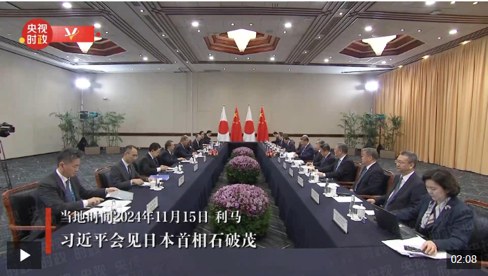 与日本首相石破茂会见时,习近平主席说,当前,中日关系处于改善发展的关键时期。中日互为近邻,同为亚洲和世界重要国家,两国关系具有超越双边的重要意义。中国的发展是世界的机遇,对日本等周边邻国更是如此。