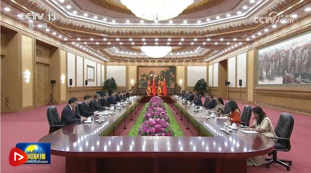 1月15日下午,国家主席习近平在北京人民大会堂同来华进行国事访问的斯里兰卡总统迪萨纳亚克举行会谈。