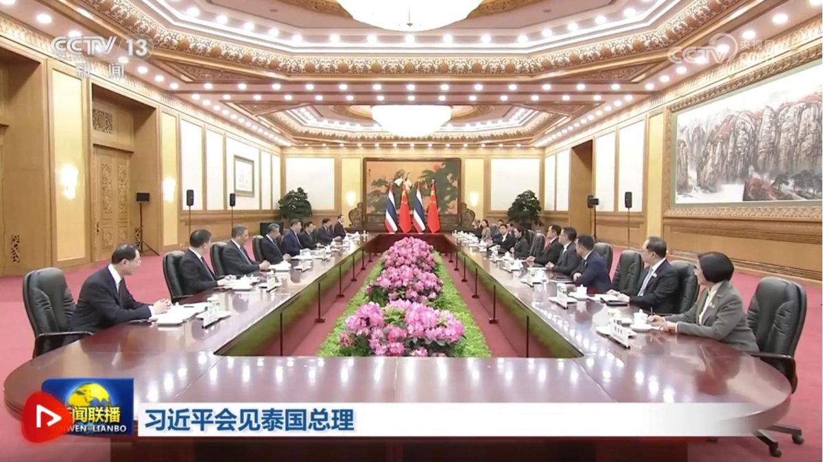 习近平强调,面对百年未有之大变局,中泰双方要巩固战略互信,坚定相互支持,以中泰关系的稳定性和确定性应对外部环境的不确定性。中方愿同泰方对接发展战略,拓展互利合作,实施好中泰铁路等旗舰项目,推动中老泰联通发展构想早日取得更多成果。深化数字经济、新能源汽车等新兴领域合作,携手打造更加稳定畅通的产业链供应链。中方赞赏泰方采取有力措施打击网赌电诈,双方要继续加强执法安全和司法合作,维护人民生命财产安全,维护地区国家交往合作秩序。要深化相知相亲,共同举办丰富多彩的建交50周年庆祝活动,打造更多暖人心、惠民生工程,让中泰友好深入人心、世代相传。中方支持泰国担任澜湄合作共同主席,祝贺泰国成为金砖伙伴国,愿同泰方密切沟通协作,坚定捍卫以联合国为核心的国际体系和以国际法为基础的国际秩序,增进全球南方团结合作,维护世界和平,促进共同发展。