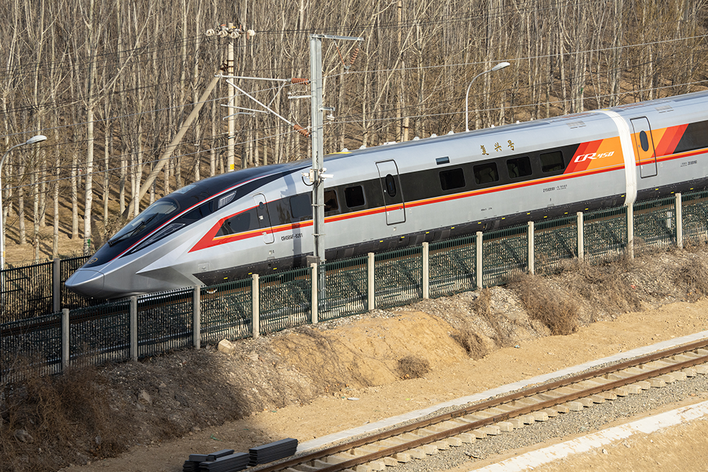 △2025年2月15日,中国铁道科学院试验中心环形试验场,复兴号CR450型电力动车组进场展开测试。