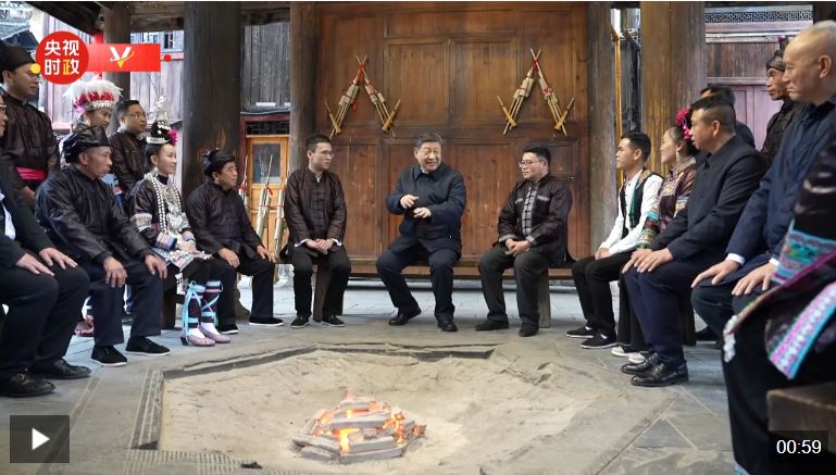 17日下午,习近平总书记来到贵州黎平县肇兴侗寨考察。在村寨的信团鼓楼,习近平同村干部和村民代表围坐在火塘边共话乡村全面振兴。大家你一言、我一语,争相向总书记讲述近年来的村寨变化和幸福生活。习近平高兴地说,从你们的讲述、你们的神情可以看出,村寨这些年欣欣向荣。现在旅游是一个很大的产业,乡村旅游如火如荼,民族地区要保留自己的特色文化,在文旅融合中更加彰显它的光彩。祝你们的日子越过越红火!