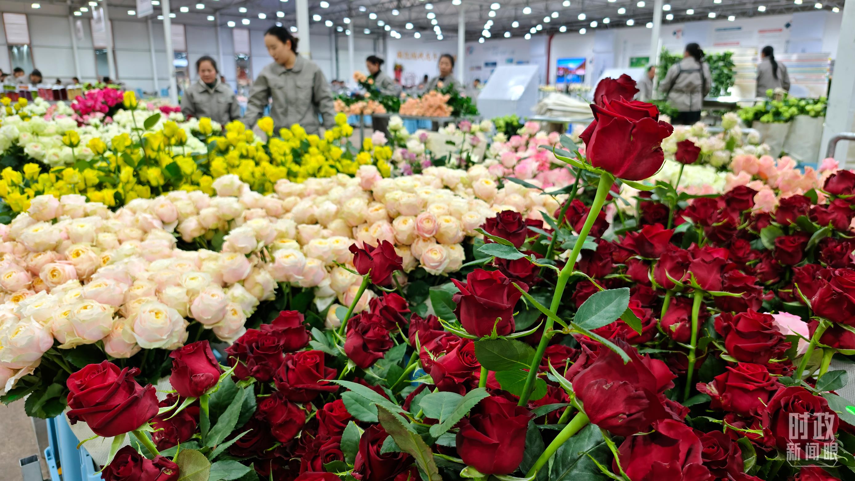 △工人正在对采摘下来的鲜花进行整理、分类。(总台央视记者邢彬拍摄)